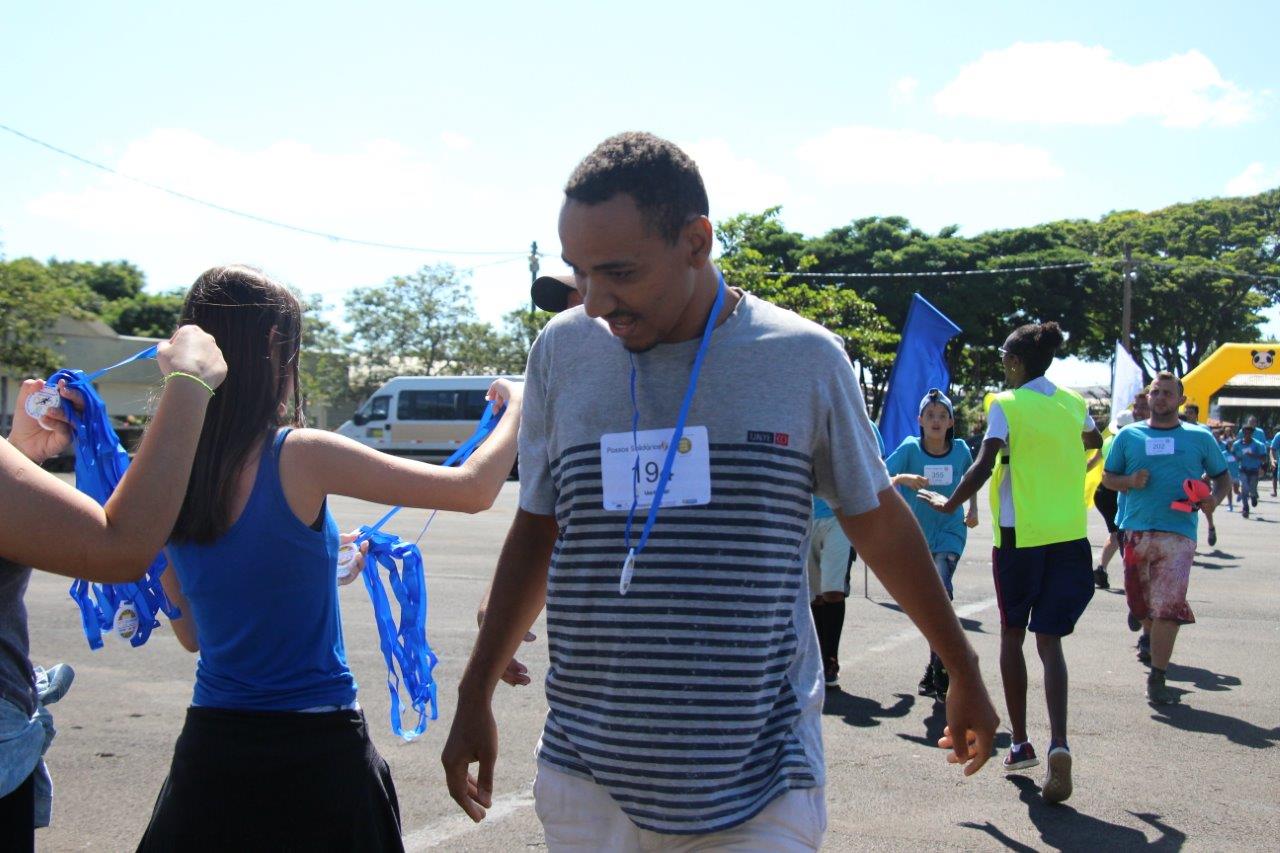 Essa prova consistia em corrida e caminhada em pares formados por um participante do Uni-FACEF e um da Apae-Franca. Para essa prova, cada cadeirante e autista seria auxiliado por um calouro do Uni-FACEF. Mas a emoção tomou conta de todos e, além dos calouros, também o Reitor, os Pró-reitores, os professores, veteranos e funcionários do Uni-FACEF, ali presentes, também participaram. Foi um momento de grande alegria, empatia, solidariedade e compreensão do universo do “outro”.