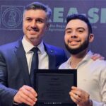 - Vinicius Marchese, Presidente do CREA-SP, entrega prêmio a Danilo Garcia Castelani, Engenheiro de Produção formado pelo Uni-FACEF.