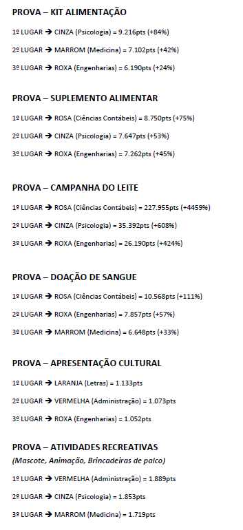 A grande final, realizada na noite de sexta-feira (27), no hall da Unidade 2, coroou um mês de esforços com provas artístico-culturais que integraram Calouros e Veteranos. O desempenho de cada uma das nove equipes — identificadas pelas cores amarelo, cinza, laranja, marrom, preto, rosa, roxo, verde e vermelho — foi um sucesso e o volume de recursos e assistência direcionado às instituições assistenciais, consolida o UniFACEF como um pilar de apoio social em Franca.